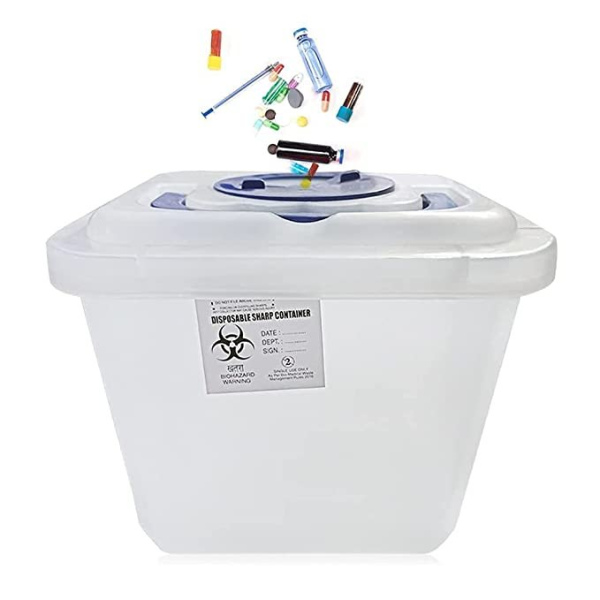 Ensure the safe and secure disposal of medical waste with our premium sharps container. Designed to meet the highest standards of biohazard safety, this container is available in blue and white and comes in a variety of sizes: 800 ml, 1.5L, 3.5L, 5.5L, and 10L.